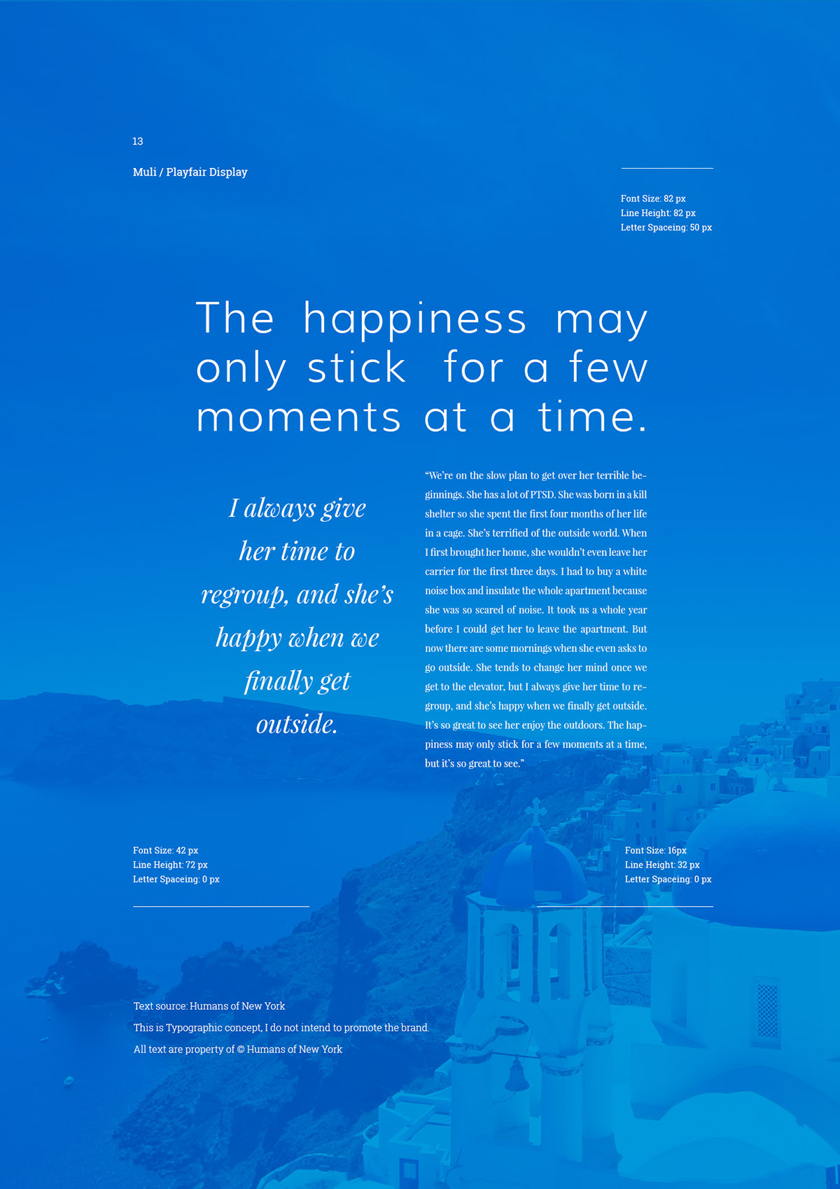 Để giúp mọi người dễ dàng hơn, nhóm tại Milo Themes đã tạo ra một bộ mẫu thử cho thấy các kết hợp font chữ Google khác nhau cho tiêu đề và đoạn văn. Họ đã sử dụng văn bản giả từ 'Humans of New York' và cũng đưa ra kích thước font chữ, độ cao dòng và khoảng cách giữa các ký tự mà họ đã áp dụng trong từng trường hợp. Hãy xem ở dưới đây.