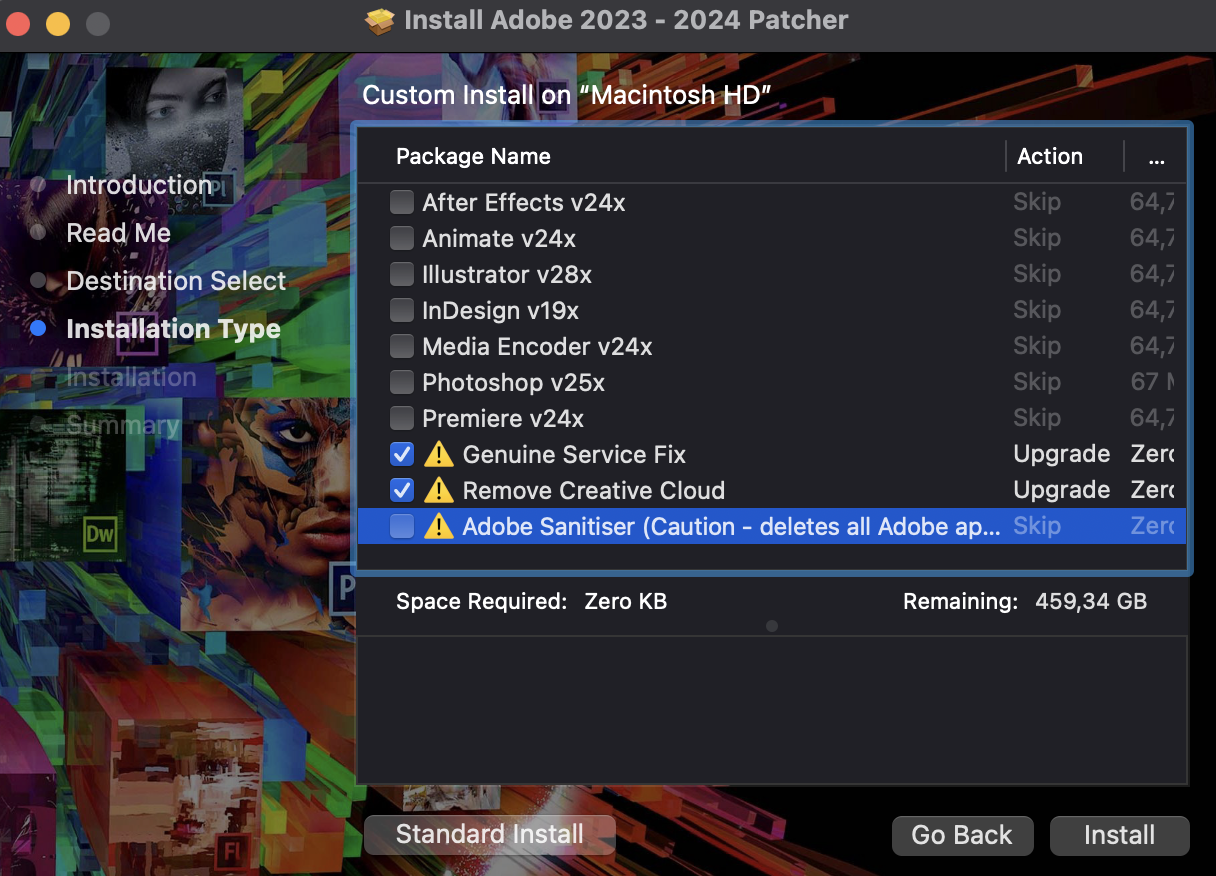 Chọn tick vào Genuine Service Fix và Remove Creative Cloud
