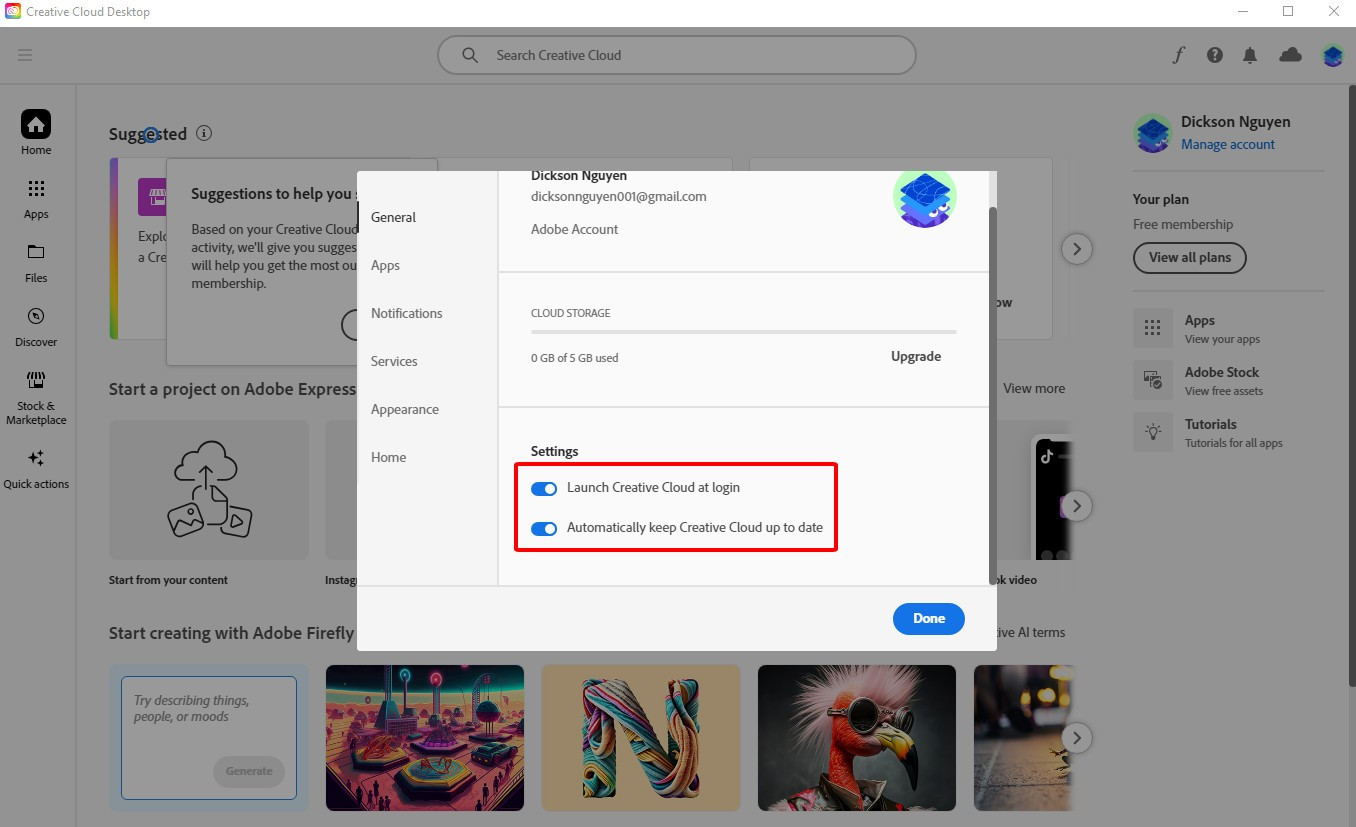 Sau khi cài xong chọn tắt update trong Setings để tránh Photoshop quét bản quyền