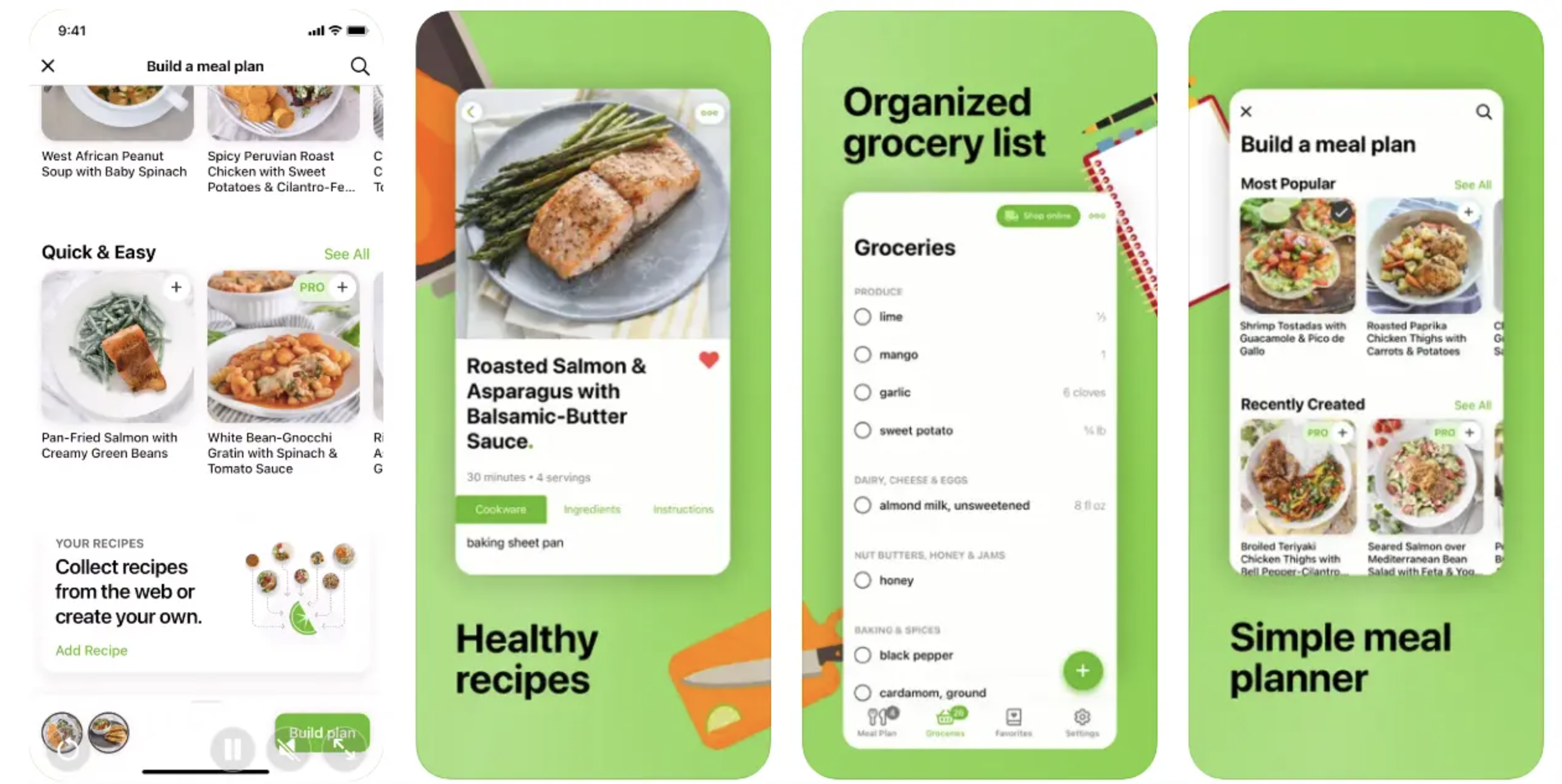 Mealime là một ứng dụng lập kế hoạch bữa ăn thân thiện với người dùng, cung cấp nhiều công thức phù hợp với các chế độ dinh dưỡng khác nhau. Trong phiên bản miễn phí, người dùng có thể chọn lựa từ một số công thức, nhưng khi nâng cấp lên Mealime Pro thông qua gói đăng ký hàng tháng, họ sẽ mở khóa công thức mới độc quyền, thông tin dinh dưỡng và khả năng thêm công thức cá nhân. Ứng dụng bao gồm một công cụ tạo danh sách mua sắm, các lối tắt mua sắm trực tuyến và khả năng điều chỉnh kích thước phục vụ. Hướng dẫn chi tiết từng bước và chế độ nấu ăn không cần tay nâng cao trải nghiệm chung của việc chuẩn bị bữa ăn.