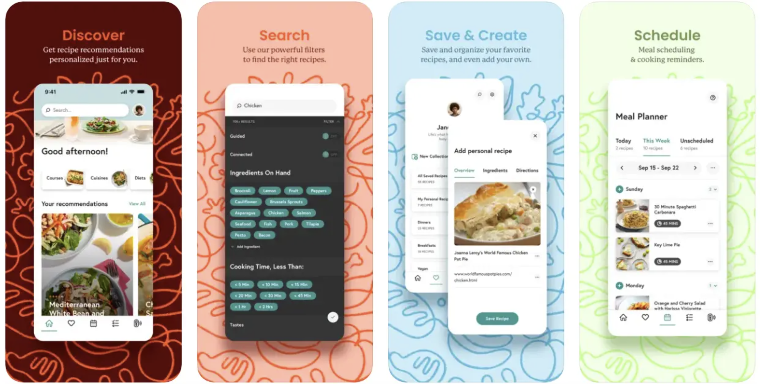 Yummly, một ứng dụng phổ biến, cung cấp kế hoạch bữa ăn, danh sách mua sắm và các công thức được đề xuất dựa trên các nguyên liệu. Mặc dù có phiên bản miễn phí, nhưng việc đăng ký một gói dịch vụ sẽ mở khóa các tính năng như tìm kiếm nâng cao, các công thức dẫn đường và trải nghiệm không có quảng cáo. Với hơn 2 triệu công thức được tổ chức theo 26 ẩm thực và sở thích chế độ dinh dưỡng khác nhau, ứng dụng cung cấp video hướng dẫn và bài viết. Trợ lý giọng nói của ứng dụng hỗ trợ điều hướng không cần tay, và phần Khám phá cung cấp 12 danh mục công thức. Đánh giá của người dùng công khai, danh sách mua sắm được tổ chức và tính năng "tủ lạnh ảo" giúp tăng cường trải nghiệm ẩm thực tổng thể.