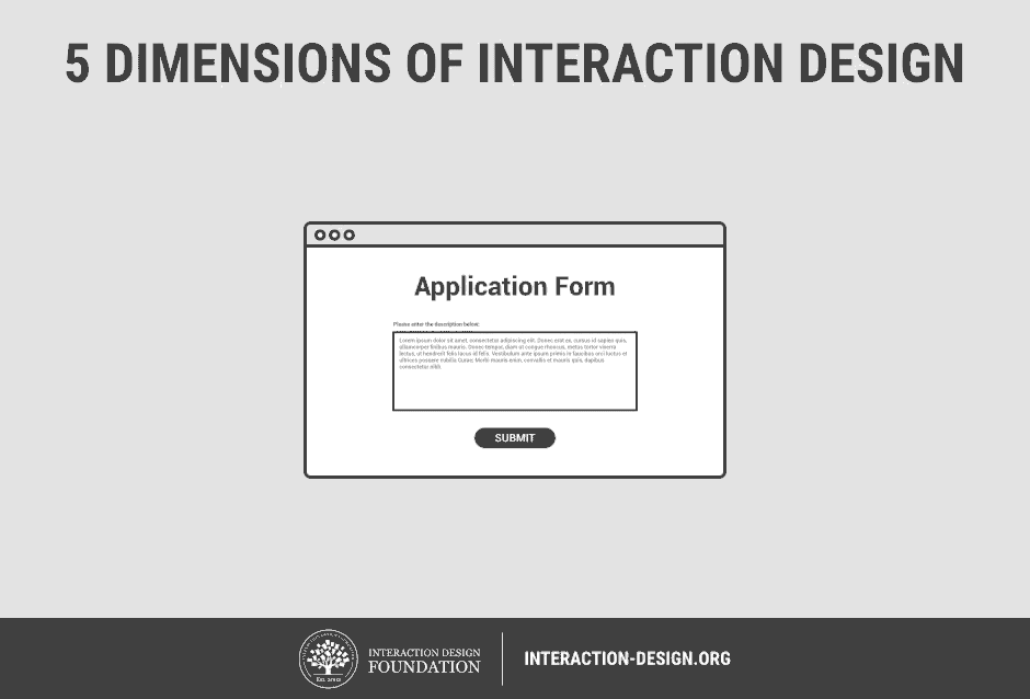 Mô hình 5 chiều trong thiết kế tương tác là một cách hữu ích để hiểu rõ về các khía cạnh quan trọng của nó. Gillian Crampton Smith, một học giả thiết kế tương tác, đã đề xuất bốn chiều ban đầu của ngôn ngữ thiết kế tương tác, và Kevin Silver, một nhà thiết kế tương tác cấp cao tại phòng thí nghiệm IDEXX, đã đưa thêm ý kiến thứ năm.